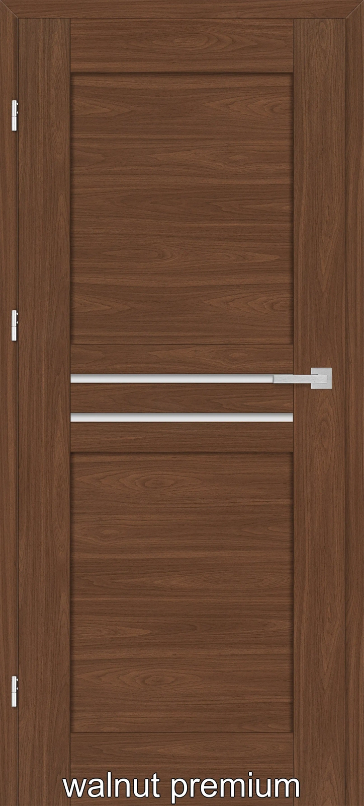 •Falset dørblade: tre synlige 2 stiftet hængsler i sølv farve