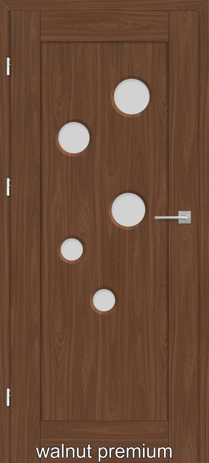 •Falset dørblade: tre synlige 2 stiftet hængsler i sølv farve