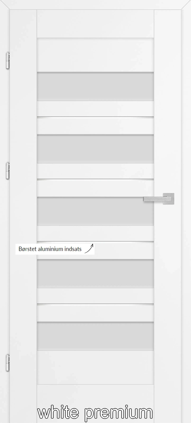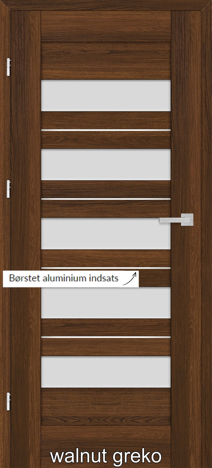 •Falset dørblade: tre synlige 2 stiftet hængsler i sølv farve
