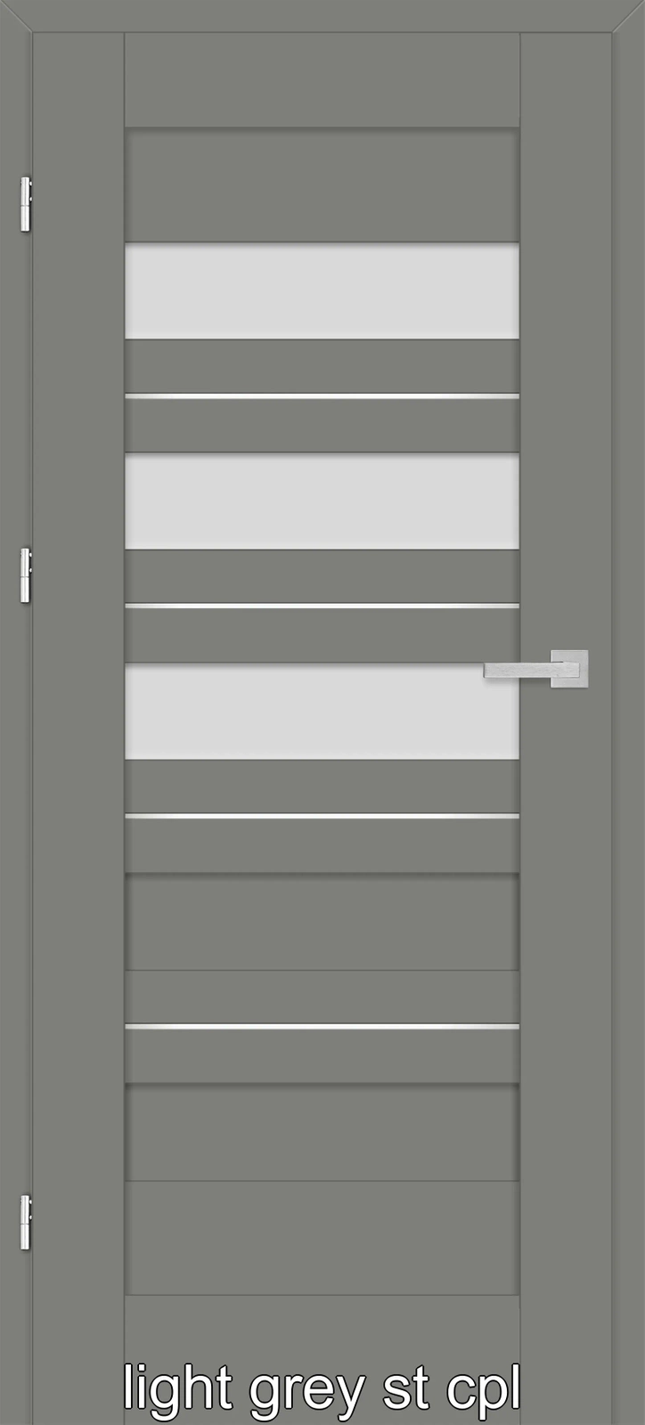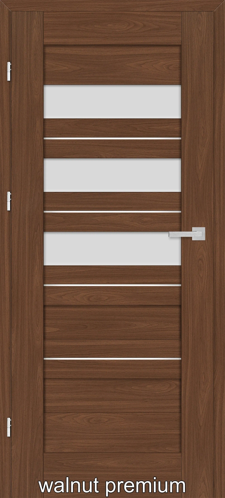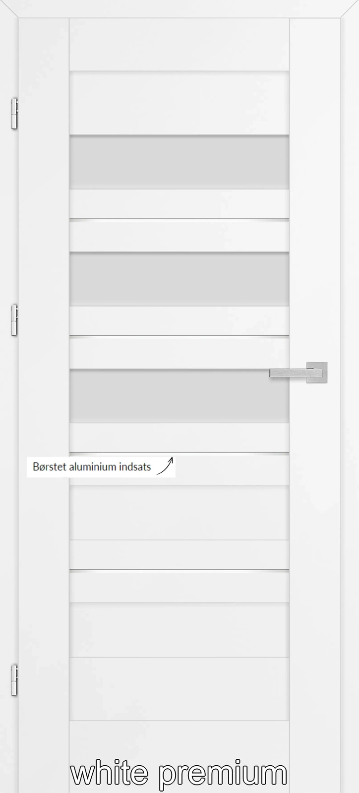 •Falset dørblade: tre synlige 2 stiftet hængsler i sølv farve