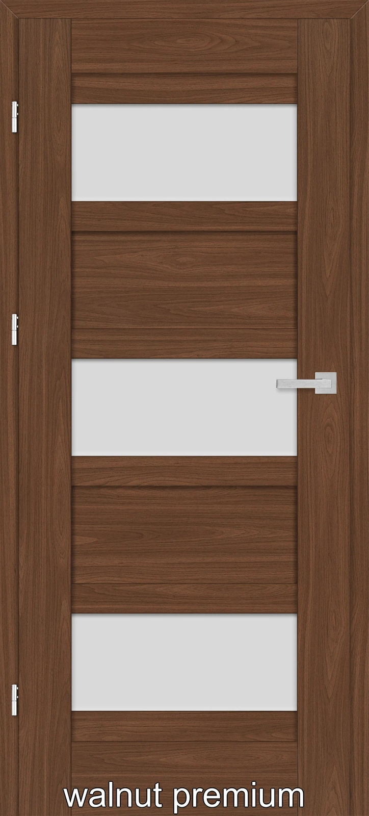 •Falset dørblade: tre synlige 2 stiftet hængsler i sølv farve